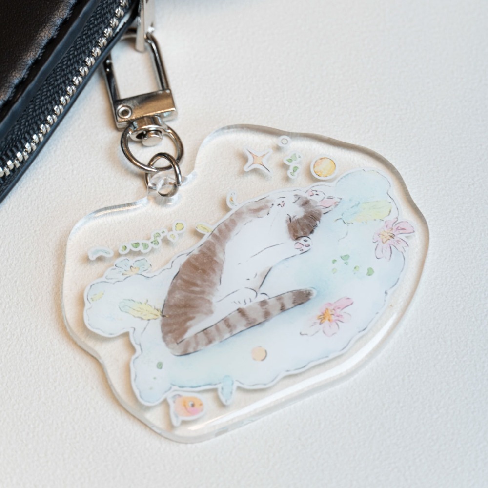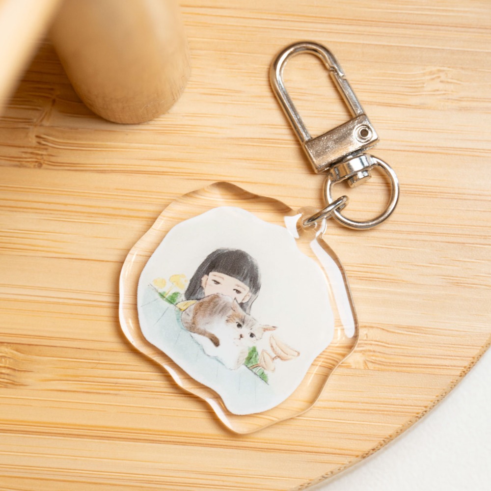 【愛的形狀】貓咪插畫鑰匙圈・滴膠壓克力吊飾|包包吊飾 女友禮物